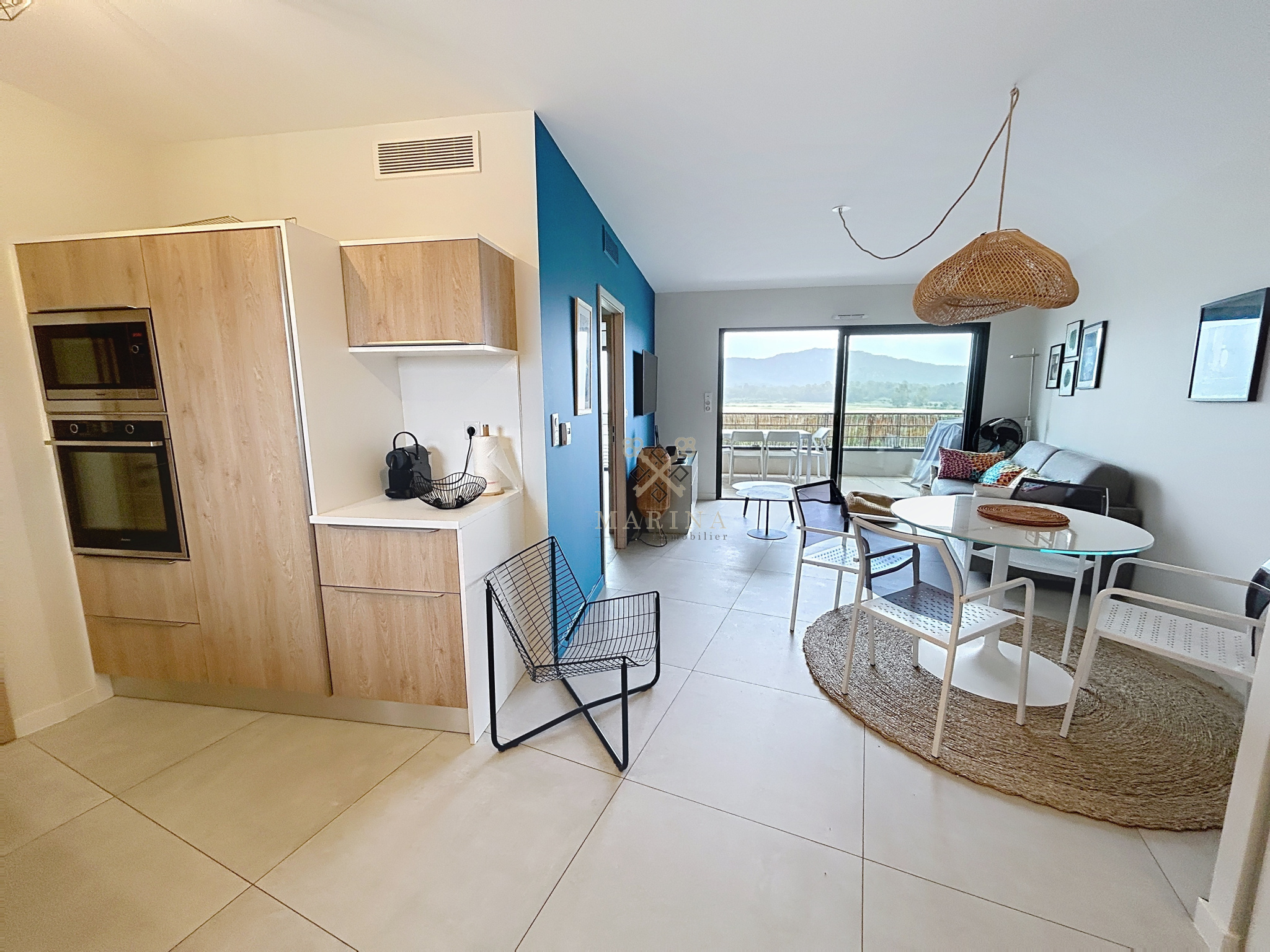 Dans une résidence récente, cet appartement est idéalement situé à seulement quelques pas du centre ville, du port de Porto Vecchio, des écoles, des commerces et des services. Au 5éme étage, ce superbe appartement d’environ 52 m2 dispose d’une entrée, d’un salon séjour avec cuisine ouverte, d’une chambre avec placard, d’une salle d’eau avec WC et d’un cellier. Lumineux et agréable, vous profiterez d’une belle terrasse couverte d’environ 9 m2 avec vue sur la campagne. L’appartement bénéficie également d’un garage fermé.